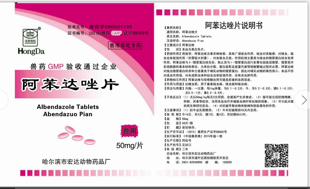 名稱(chēng):阿苯達(dá)唑片